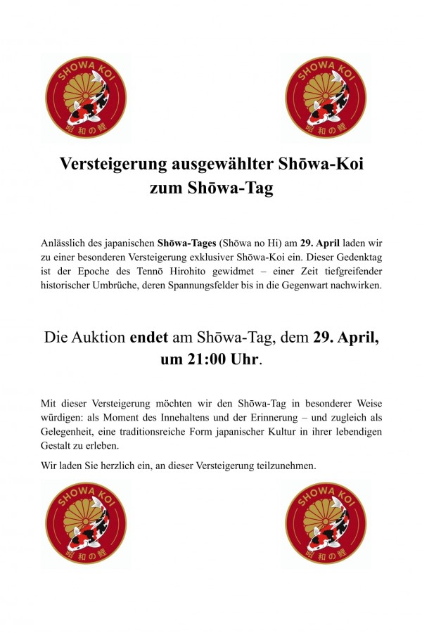 Die Verfügbarkeit kann nicht zwingend gewährleistet werden, die angebotenen Koi sind begrenzt.